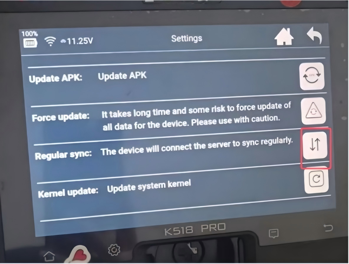 Synchronisieren Sie das K518-Gerät und starten Sie es neu.