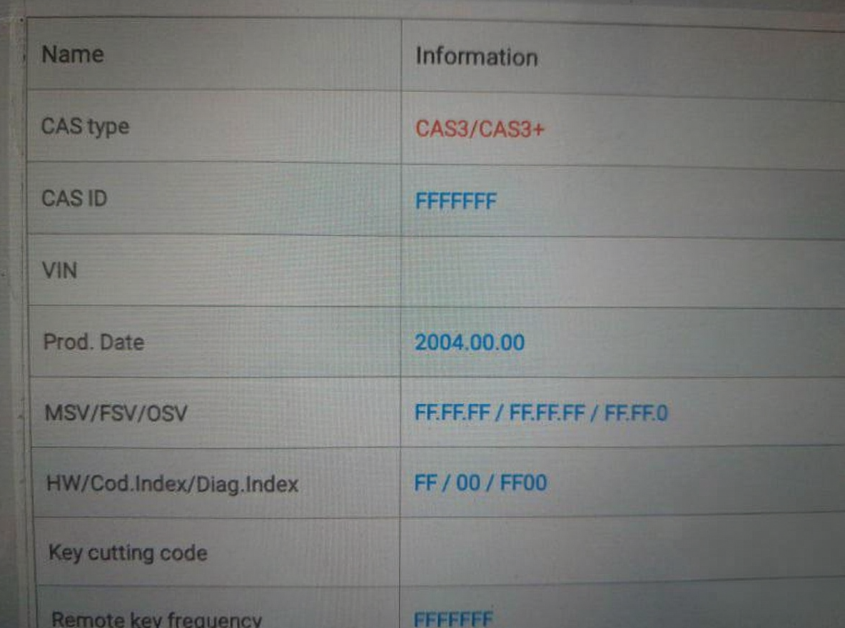 Alle zuvor verfügbaren Fahrzeuginformationen, einschließlich der Fahrgestellnummer (VIN), wurden gelöscht. Die einzige Lösung ist die Reparatur des CAS-Moduls. Eine Reparatur ist jedoch sinnlos, wenn das Modul physisch beschädigt ist; in diesem Fall ist ein vollständiger Austausch unumgänglich. Dieser Beitrag befasst sich speziell mit dem Ausfall des CAS-Moduls aufgrund von Softwarefehlern.