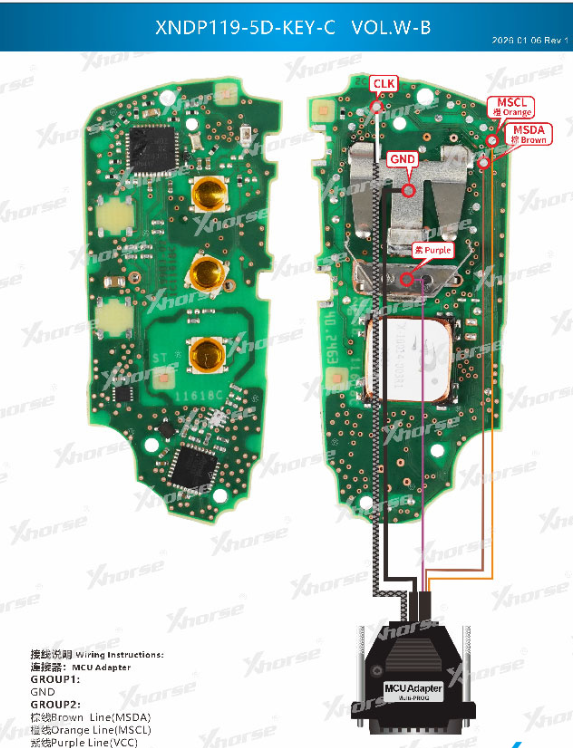 Xhorse Multi Prog-Verdrahtungsdiagramme für MQB49 5C 5D-Schlüssel: